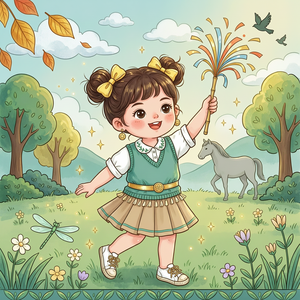 以主题:马跃青园,做闪光的自己生成一张图片,适合学生绘画的,不要过于生硬,不作为海报,不出现主题,只是突出人物(可爱的小女孩),马可作虚化形象